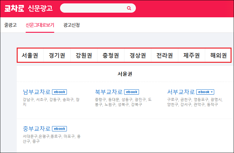 • 사이트에 접속한 후, 원하는 지역구인구직 신문을 선택합니다. 교차로 전자책 사이트에서는 지역별로 다양한 교차로 신문이 제공되므로, 구직자는 자신의 지역에 맞는 신문을 선택할 수 있습니다.