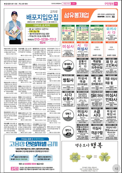 교차로 신문에서 제공되는 구인 정보는 최신 상태가 아닐 수 있습니다. 구직자는 공고가 여전히 유효한지, 채용 마감일이 지나지 않았는지 꼭 확인해야 합니다.