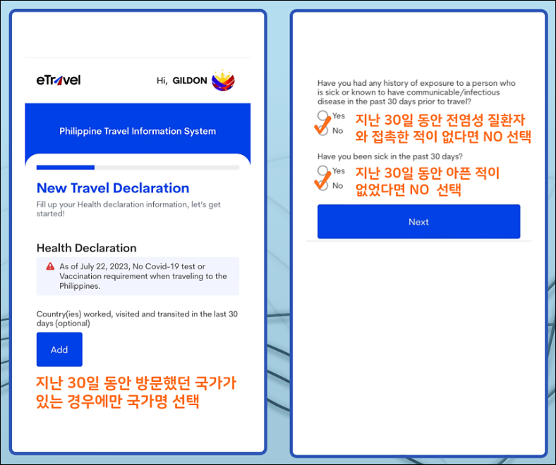 ✅ 필리핀 입국 이트래블 등록 가능 시점