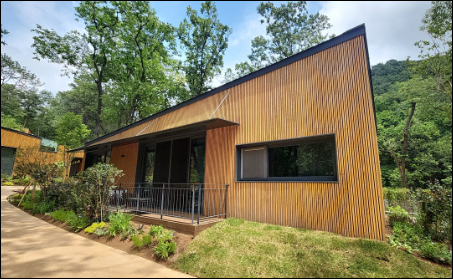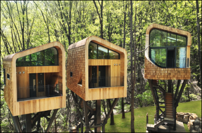 트리하우스는 친환경 건축자재를 사용하여 숲과 조화를 이루도록 설계되었습니다.