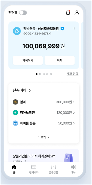 - 이체 및 송금: 계좌 간의 이체나 타 은행으로의 송금이 가능합니다.