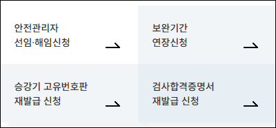 | 행정민원 신청 | 검사주기 조정, 안전관리자 선임·해임 등 행정 관련 민원 접수 |
