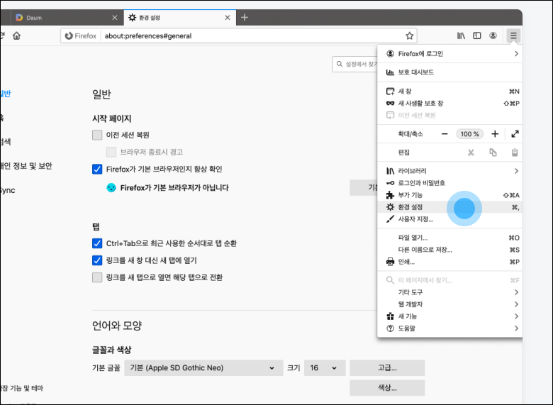 모바일에서 다음을 시작페이지로 설정하는 방법