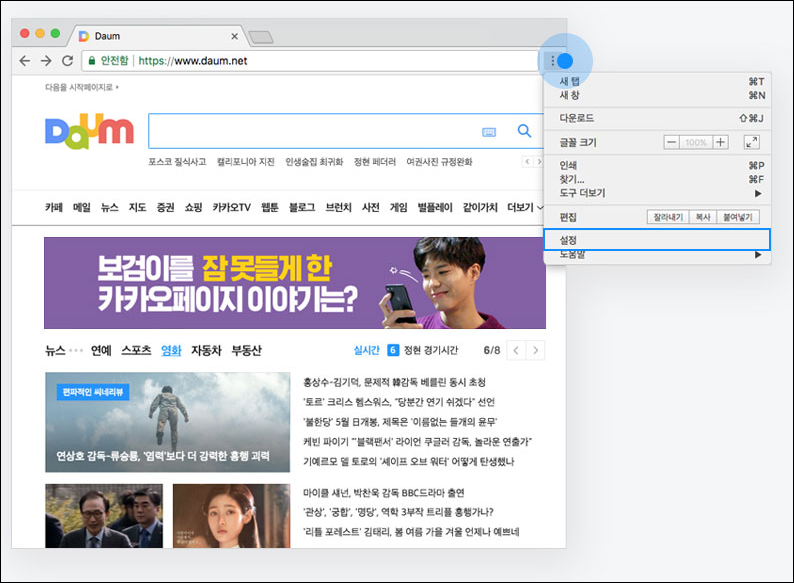 - 크롬 앱 실행 후 https://www.daum.net 접속