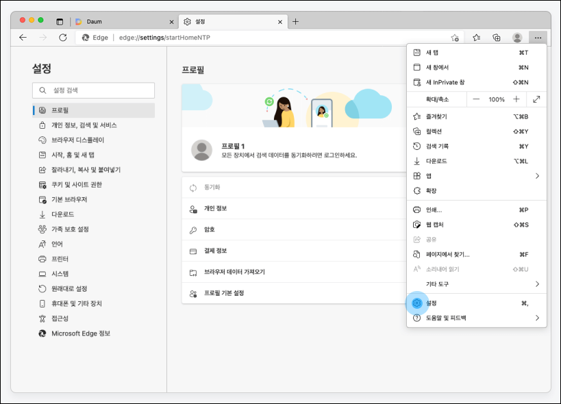 엣지(Microsoft Edge) 브라우저에서 설정하기