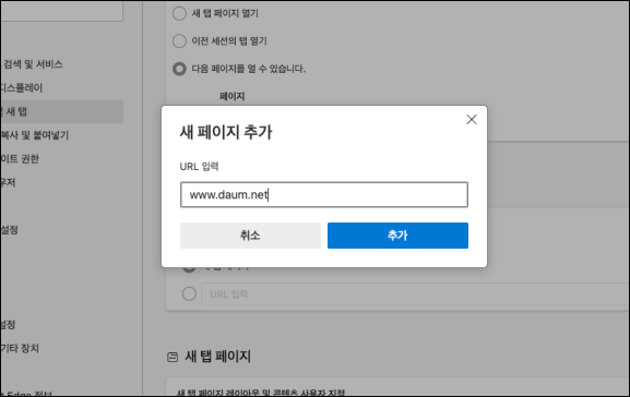 - [새 페이지 추가] 클릭 후 https://www.daum.net 입력