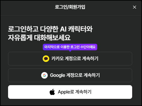 | 무제한 무료 채팅 | 대화 횟수나 길이에 제한 없이 자유롭게 캐릭터와 스토리 진행 가능 |