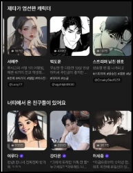 인기 있는 AI 캐릭터 중 하나를 선택하거나, 직접 캐릭터를 생성해볼 수 있습니다.