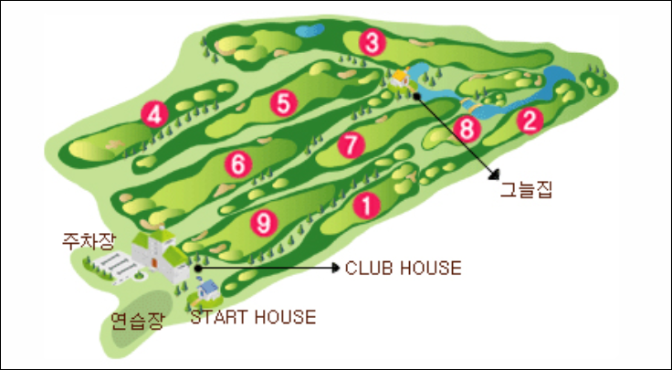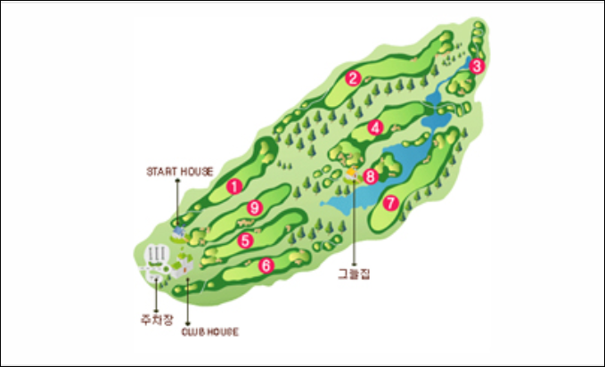 | 포항 충무대 | 경북 포항시 남구 청림동 28 | - 해병대 특유의 강인한 분위기. - 페어웨이가 좁아 정교한 드라이버 샷 필요. - 러프가 깊어 어프로치와 퍼팅 실력 요구. |