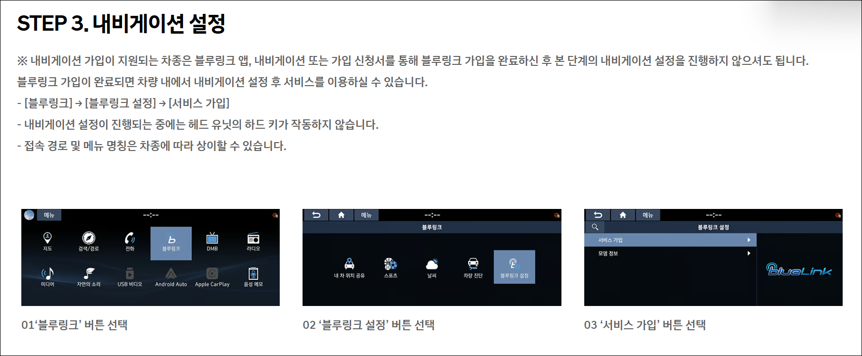 - 차량별 서비스 지원 여부 확인: 본인의 차량이 블루링크 지원 대상인지 확인 가능