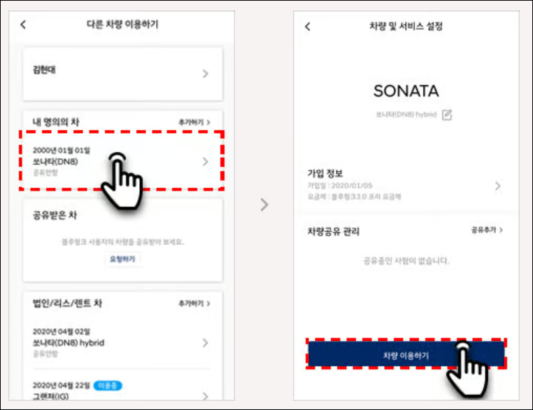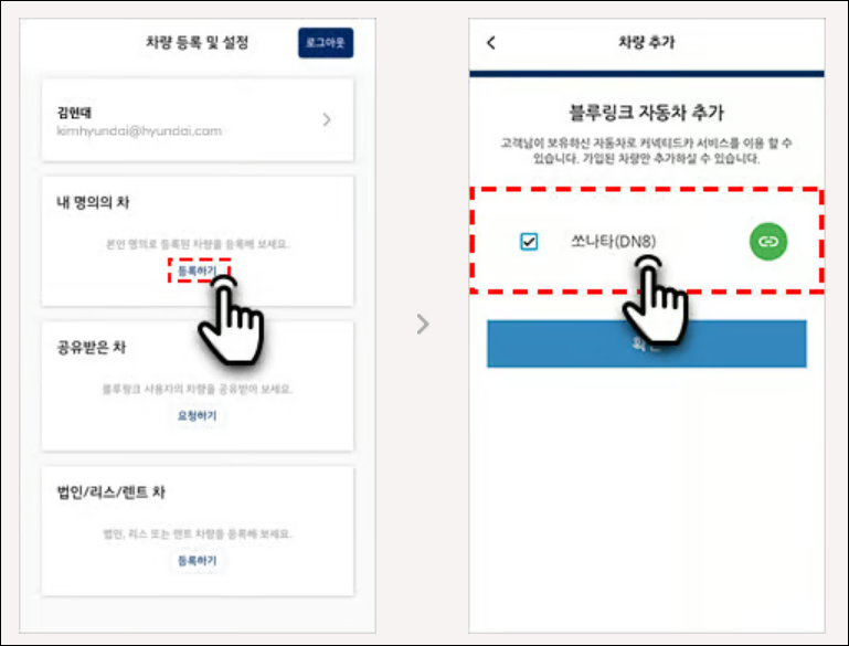- 현대자동차 계정을 생성하고 차량 정보 등록