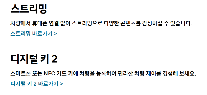 고급 스트리밍 서비스, 내비게이션 연동, 위치 기반 콘텐츠 등 |