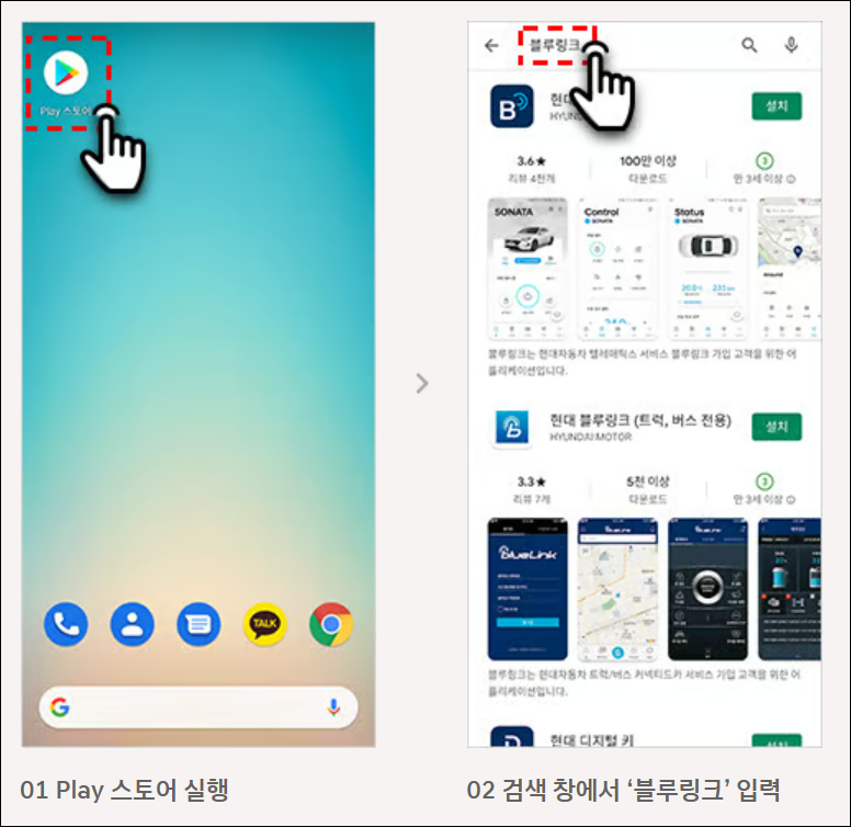 | 구분 | 블루링크 홈페이지 | 블루링크 앱 |