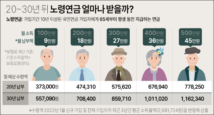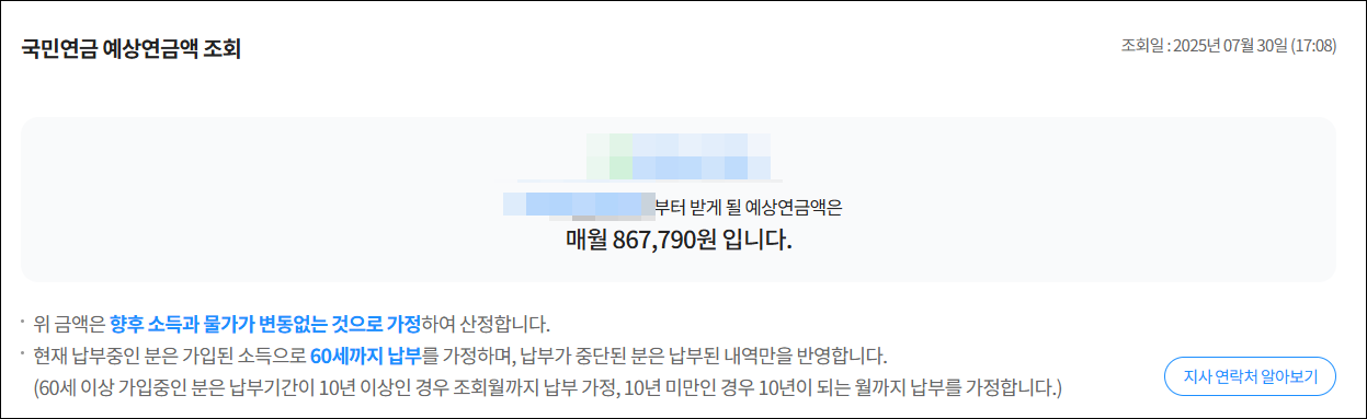예상치이므로 실제 수령액과 차이가 있을 수 있습니다. 가입 기간, 소득 변동, 정책 변화 등에 따라 달라질 수 있습니다.