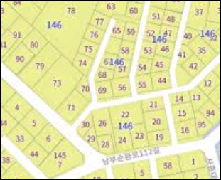 - 지적도 내 각 필지에는 고유 지번이 부여됨