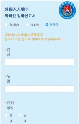 중국 입국 신고서 개요