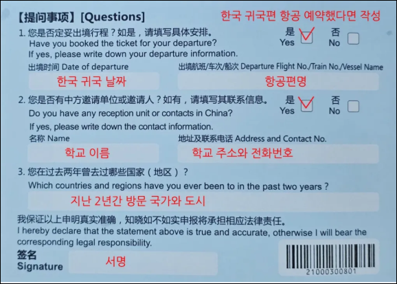 중국 입국신고서 작성 시 자주 발생하는 실수