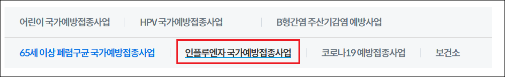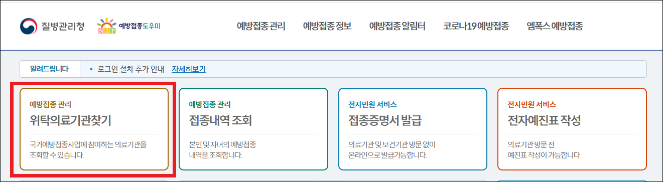 - ‘예방접종 기관 찾기’ 메뉴 클릭