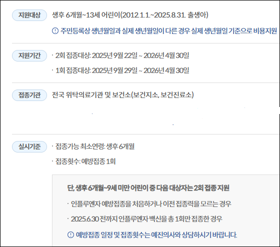 | 어린이 | 생후 6개월 ~ 13세 이하 (2012.1.1.~2025.8.31. 출생자) |