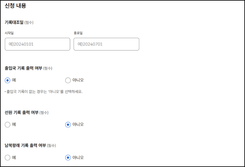 - 기간 설정: 원하는 출입국 기록 범위를 선택