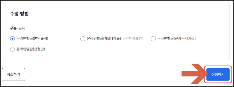 - 수령 방법 선택: 온라인(PDF 다운로드)